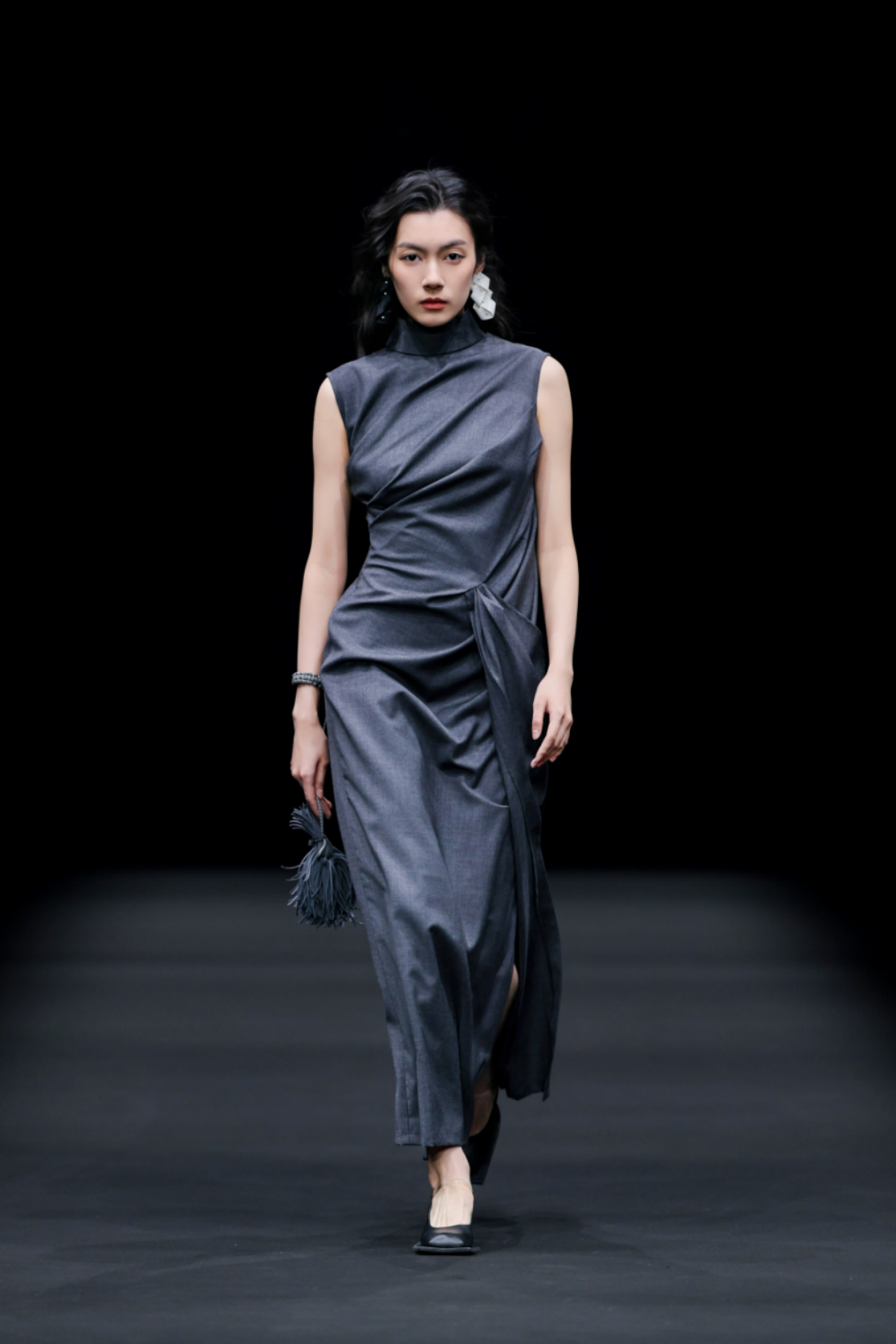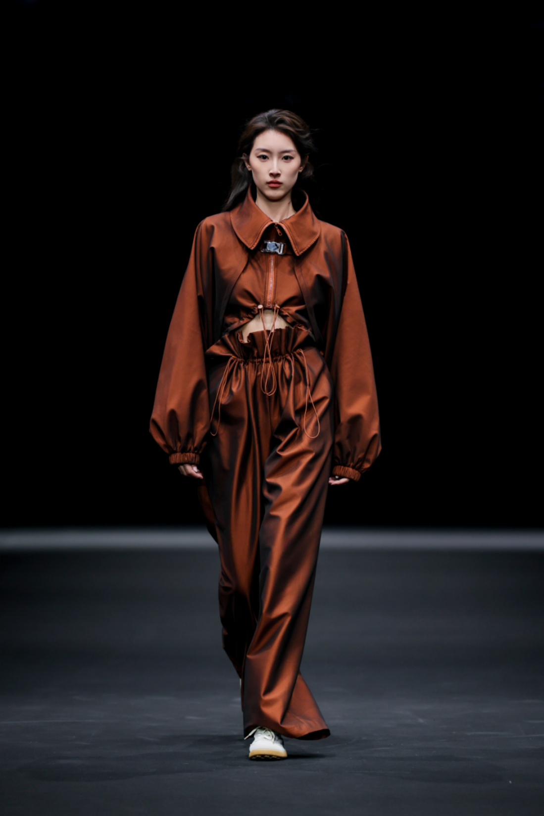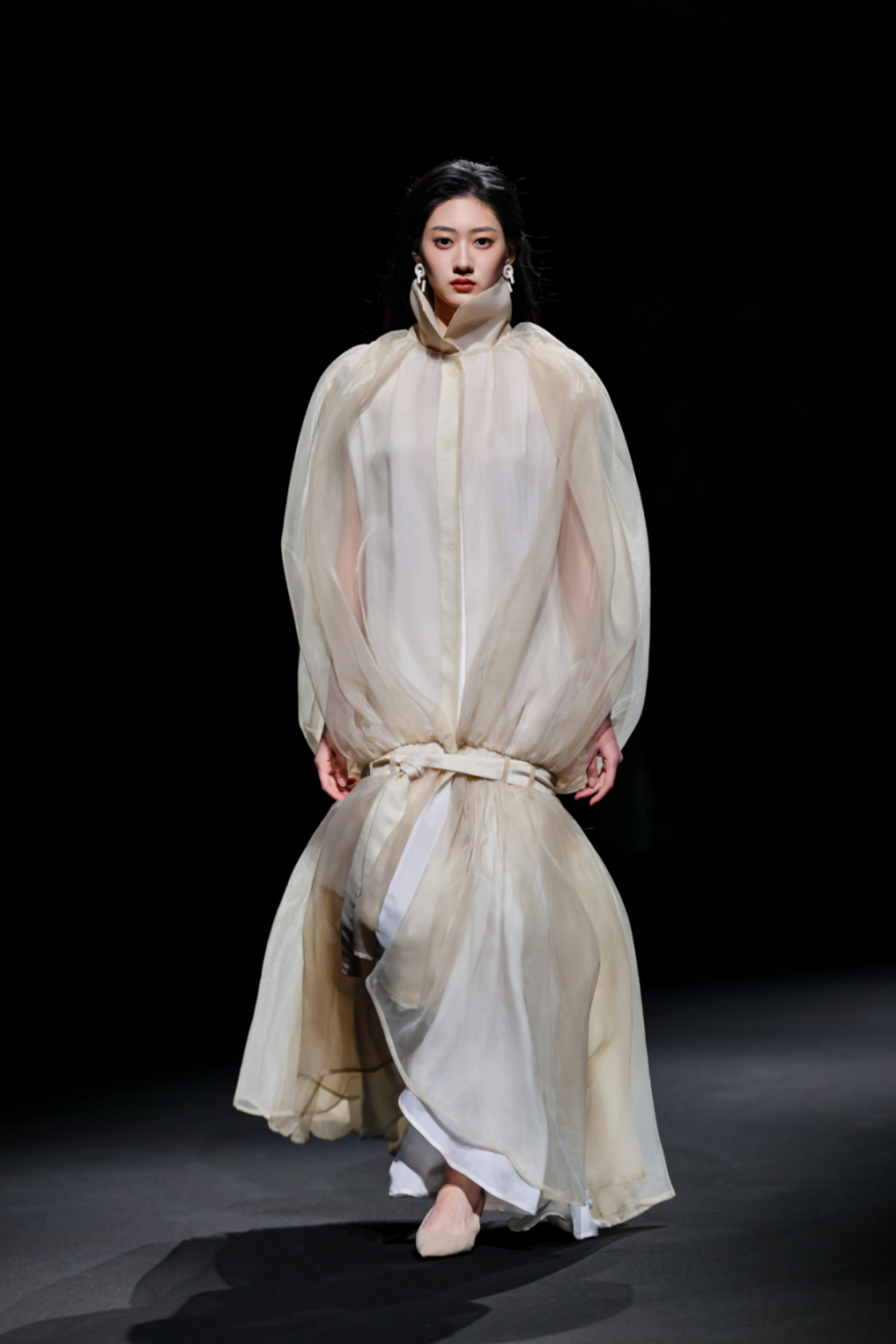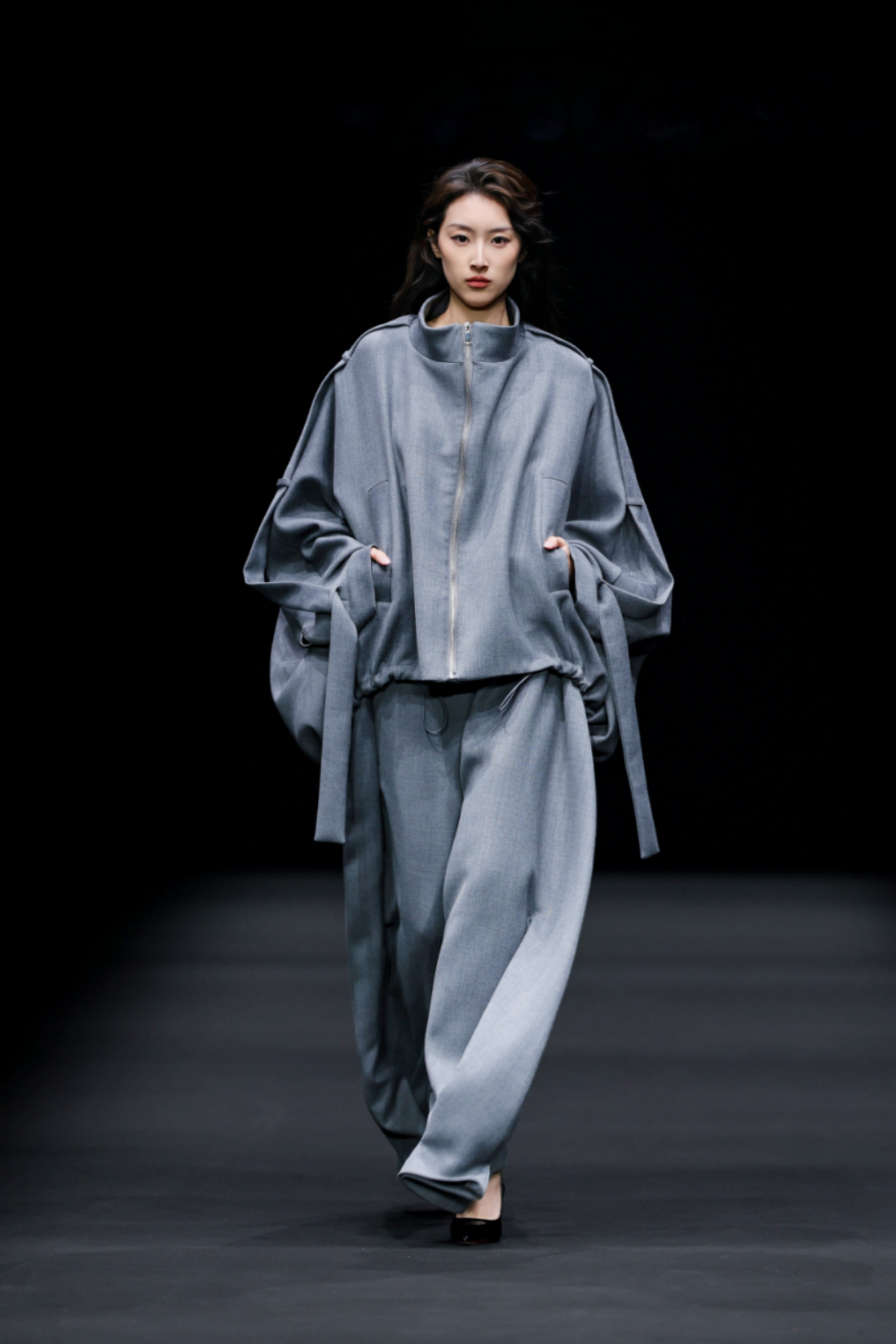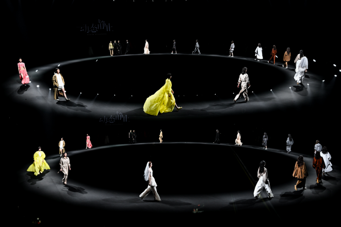 秀场之上,50套高级女装成衣次第登场,以"气"的起伏为内在叙事脉络,铺展为三个相互递进的设计章节,共同描绘出当代都市女性在秩序与灵动之间自在穿行的精神图鉴。