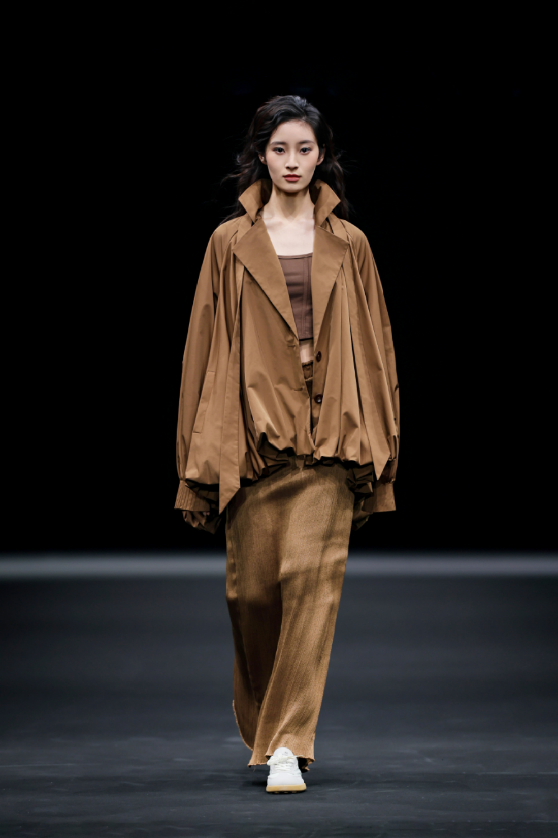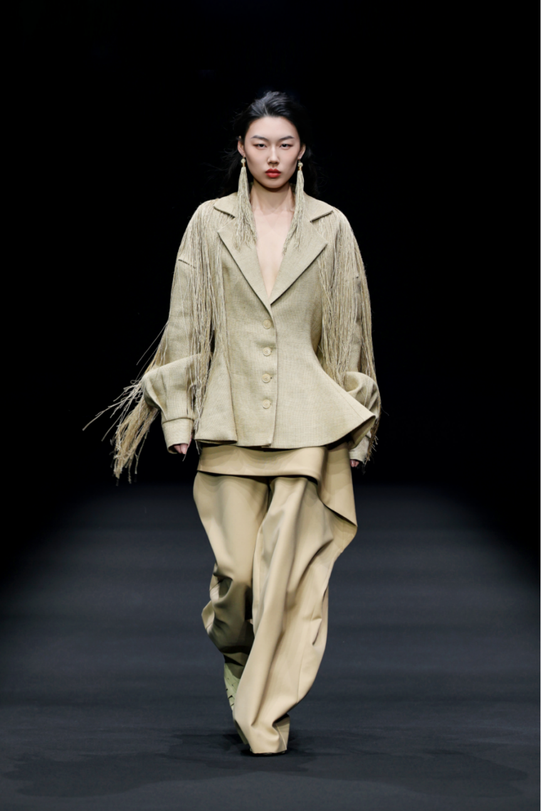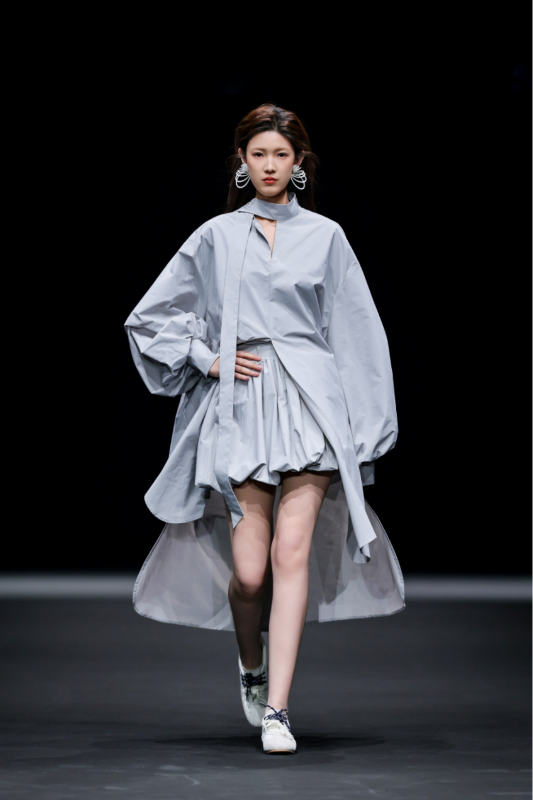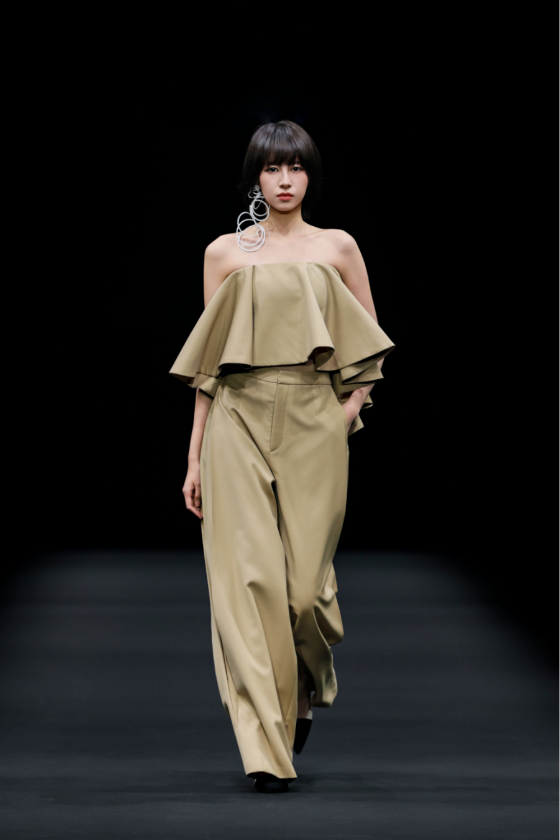 秀场之上,50套高级女装成衣次第登场,以"气"的起伏为内在叙事脉络,铺展为三个相互递进的设计章节,共同描绘出当代都市女性在秩序与灵动之间自在穿行的精神图鉴。