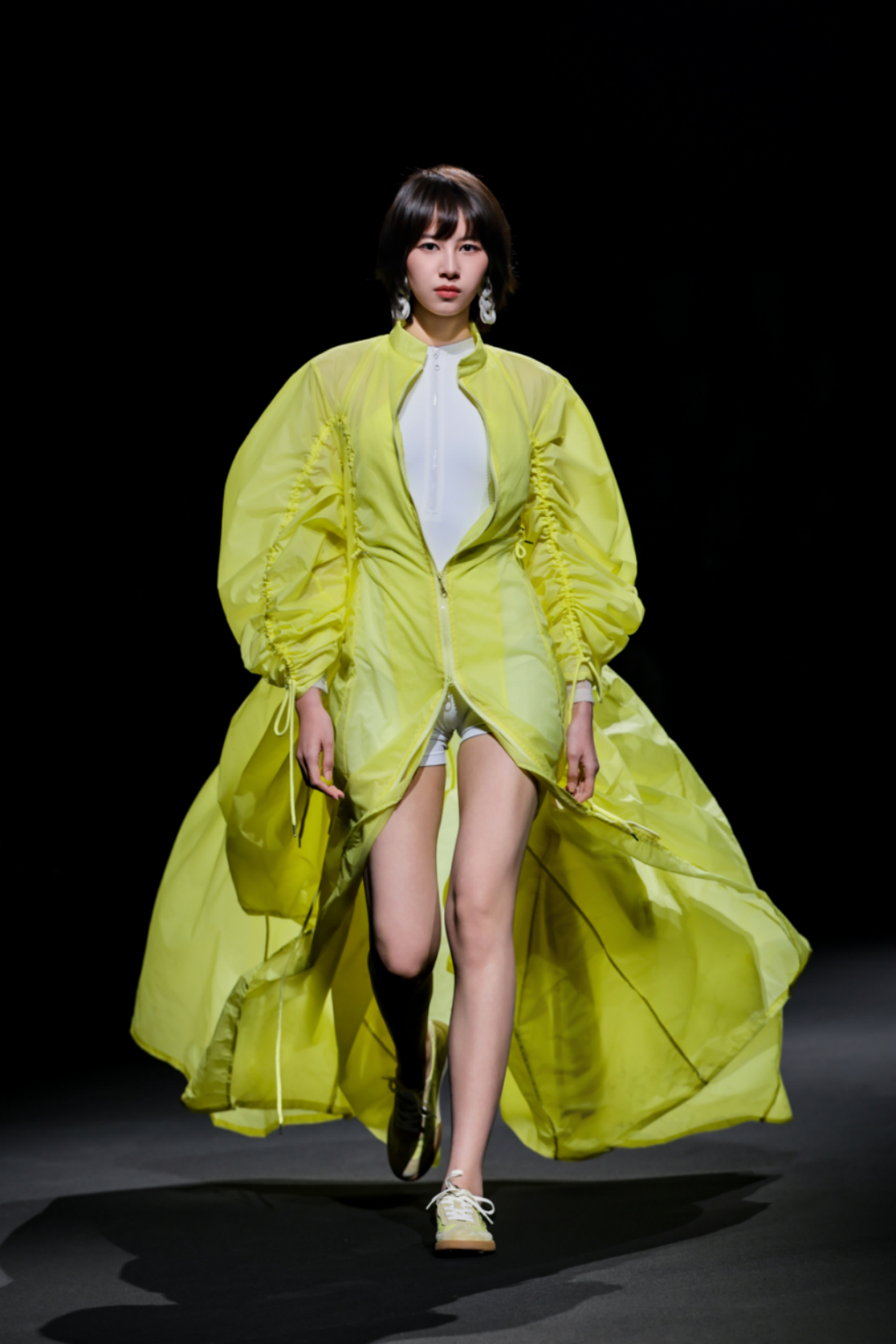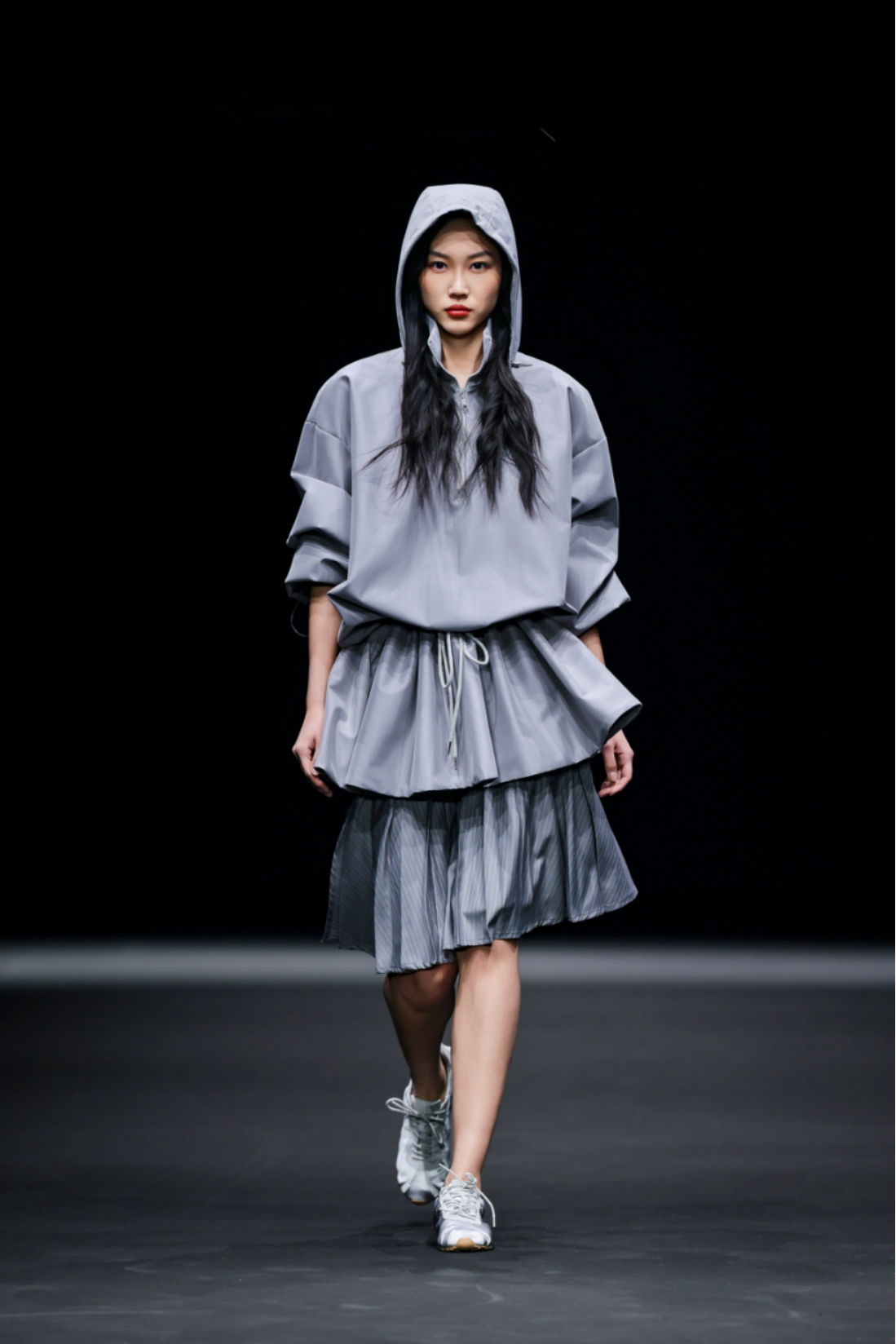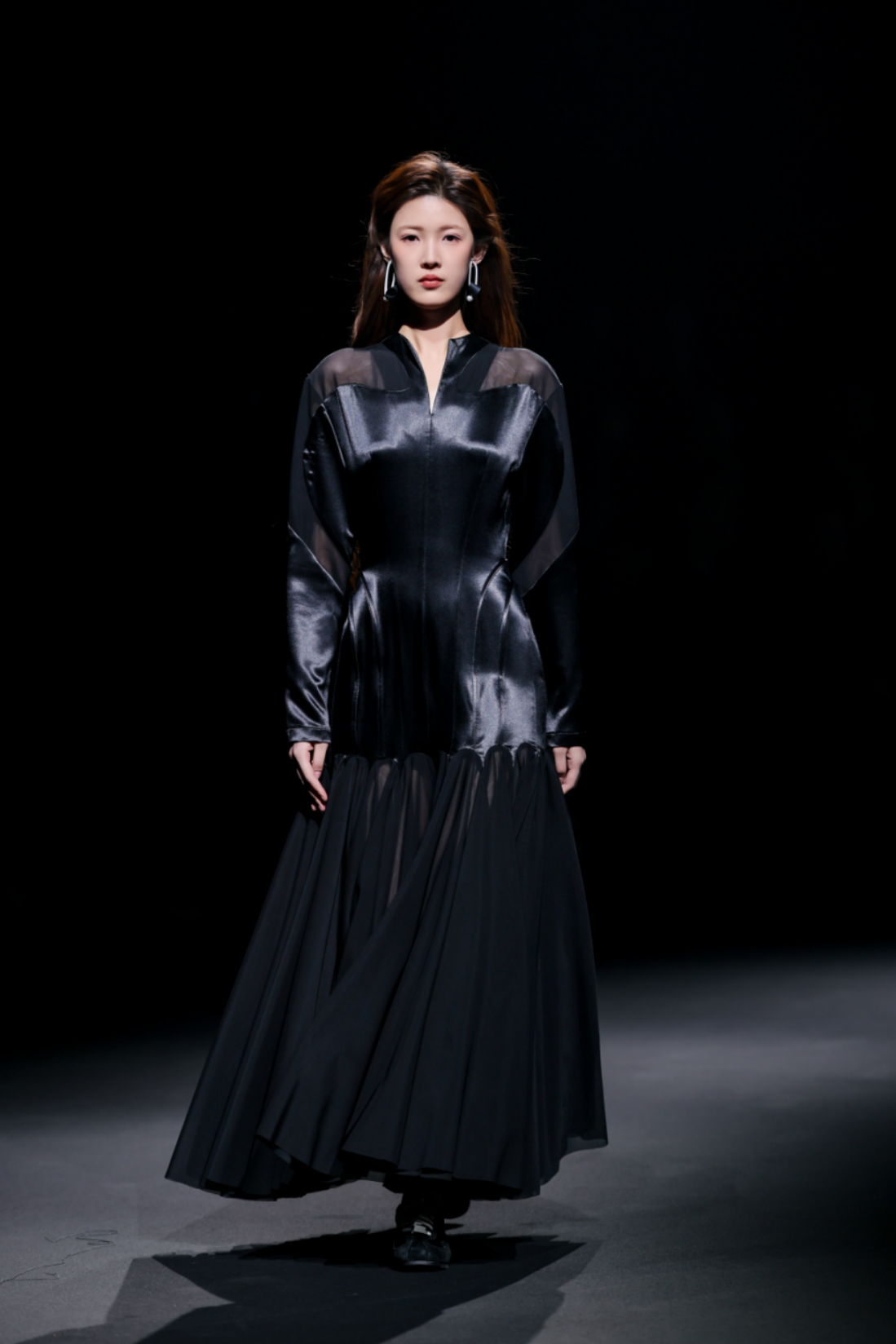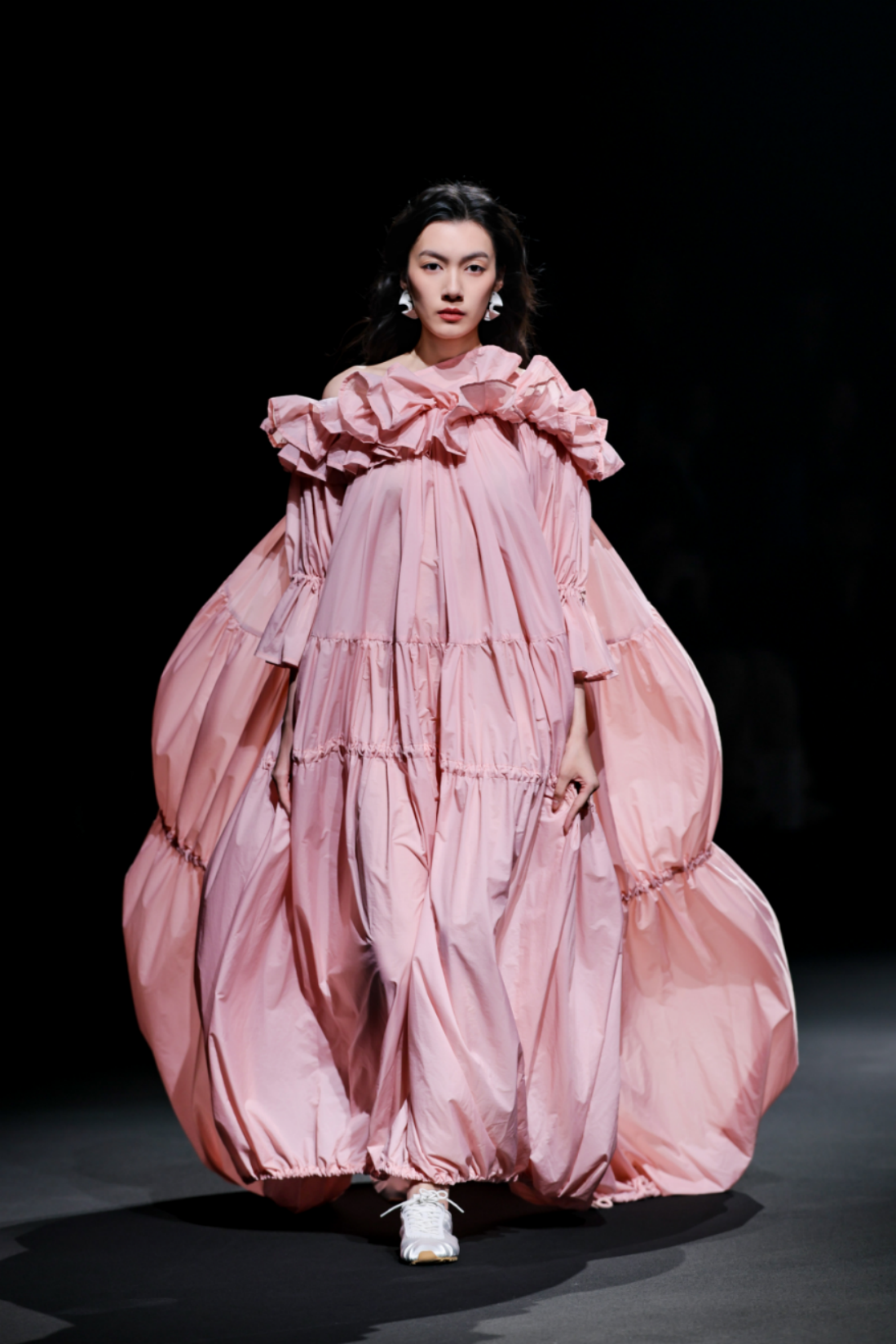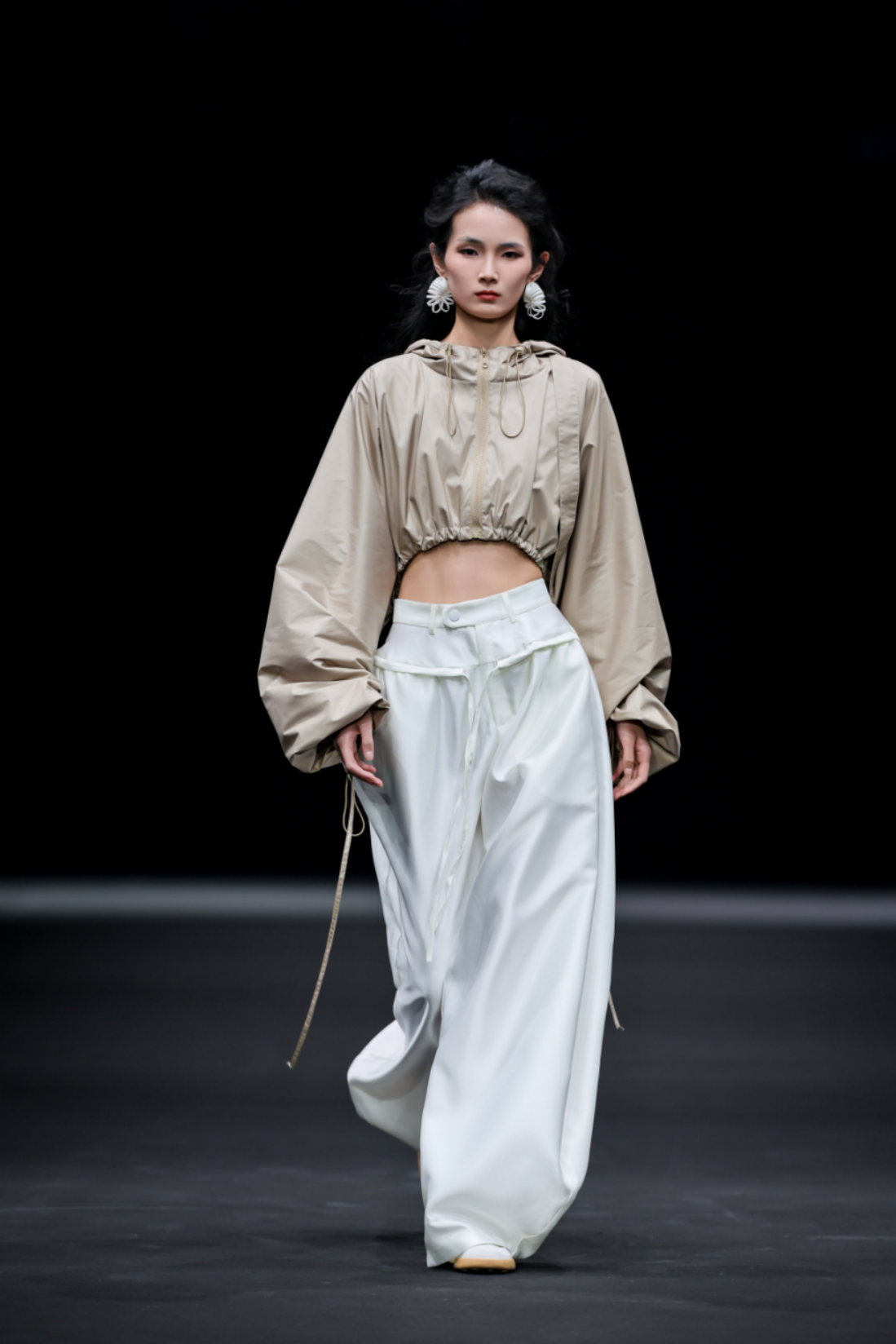 秀场之上,50套高级女装成衣次第登场,以"气"的起伏为内在叙事脉络,铺展为三个相互递进的设计章节,共同描绘出当代都市女性在秩序与灵动之间自在穿行的精神图鉴。