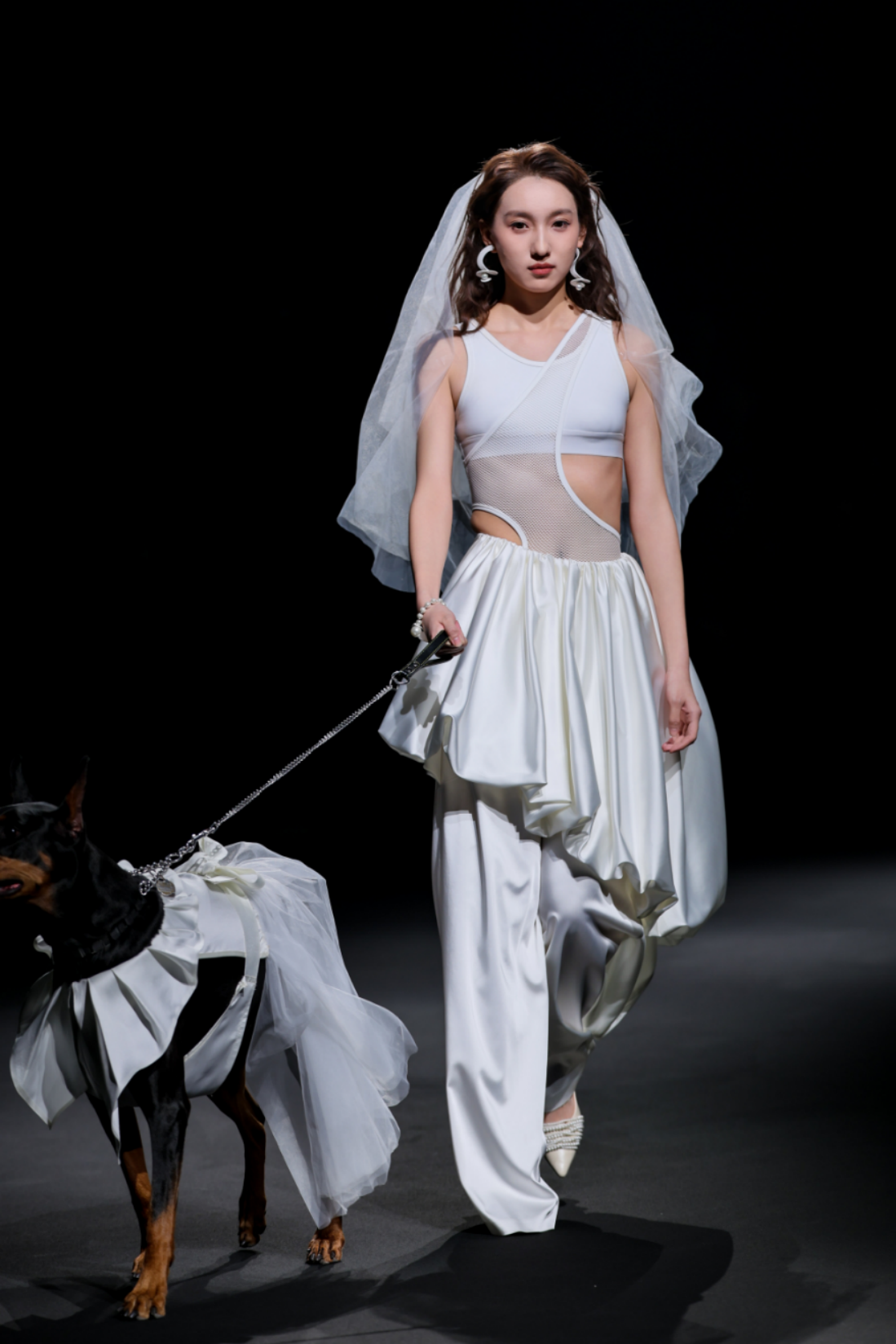 【优雅运动】系列将都市运动美学延伸至生活本身的温度之中。秀场上,一份意想不到的陪伴悄然出现,将亲宠与轻户外的自在气息带入这场优雅的叙事,彰显真正的都市动能,从不止步于正装的边界,而是流动于人与自然、人与生命的每一处真实连接。系列以运动的逻辑重构优雅的语法,令穿着者在积极的姿态中,依然自持、依然有格。