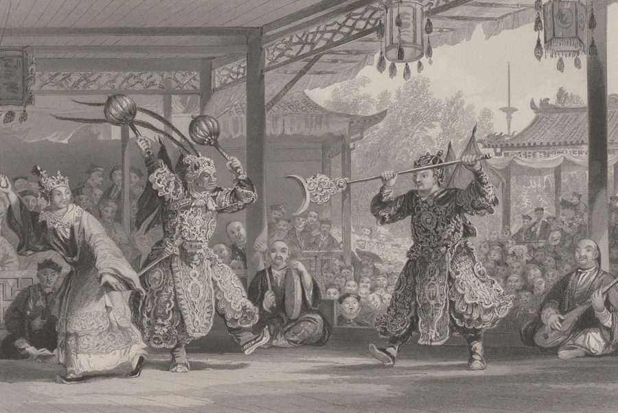 19世纪初出生于英国伦敦的托马斯·阿罗姆,是诺丁山的圣彼得教堂、利物浦的威廉布朗图书馆等重要建筑的设计师。从北京的北海公园到南京的琉璃塔,从戏台看戏到流动剃头摊剃头,从未亲临中国的阿罗姆用画笔与想象“神游华夏”,其创作灵感主要源于早他两个世纪的荷兰旅行家约翰·尼霍夫的旅行游记、英国马戛尔尼使团随团画师威廉·亚历山大的速写和传教士利玛窦的著作等二手资料。通过这些素材,阿罗姆以高超的绘画技艺,将异域风情转化为诗意画卷,满足了欧洲观众对遥远东方的好奇心与审美需求。