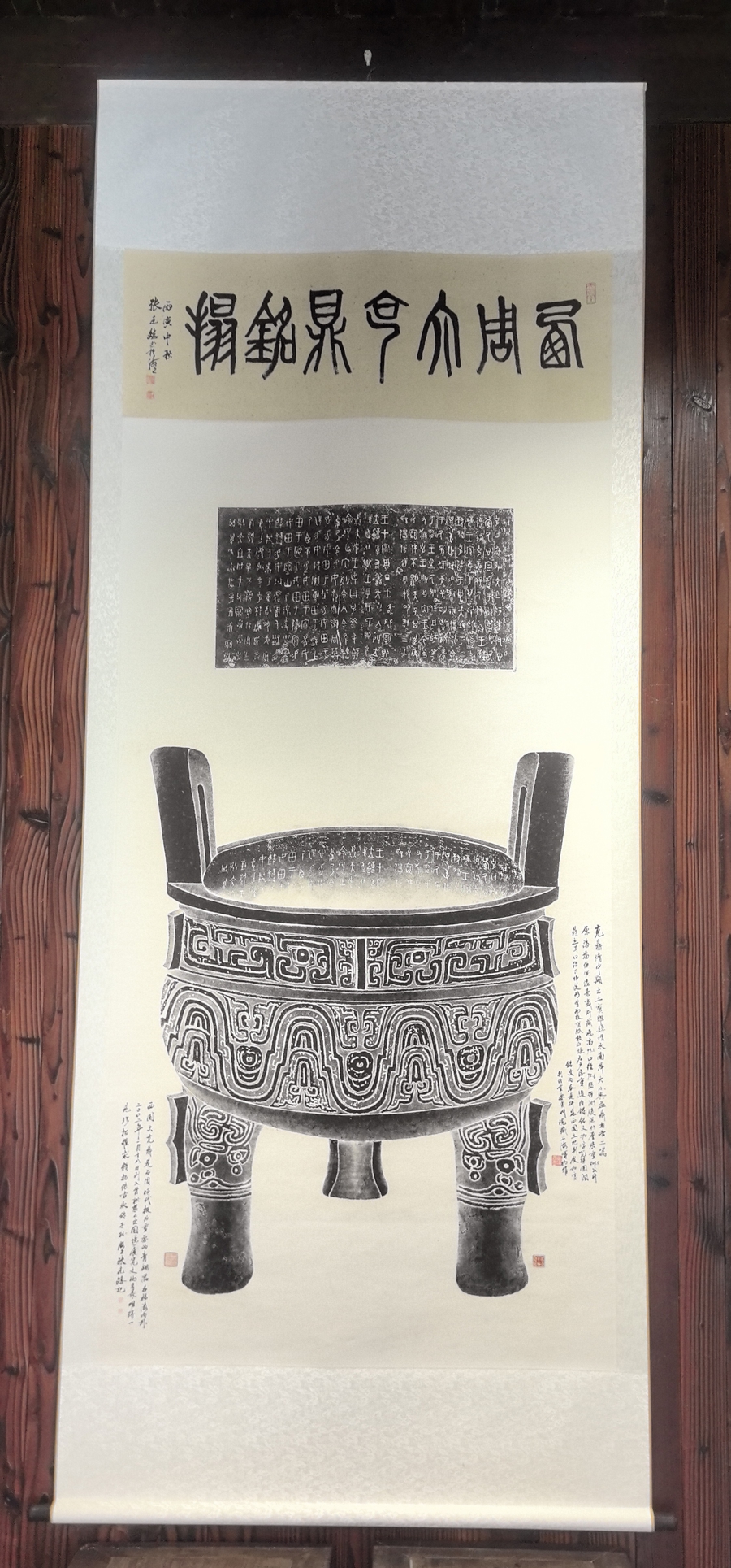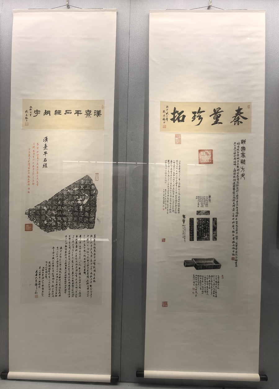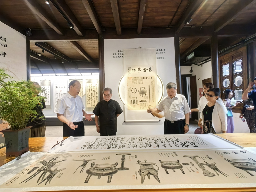 张建斌酷爱书法艺术,几十年笔耕不辍,尤其传拓技术富于创新。这是一种源于古代的技艺,将青铜器上的图案和文字以墨色真实还原。古物承载着历史记忆与文化基因,能够增强民族认同感和文化自信,是连接过去与未来的文化纽带。“古代石刻,青铜器型古朴端庄,文饰精美,只有拓片能展现来自远古的龙凤饕餮兽面等纹字纹饰。”他说,从拓片上能感到某种吞吐天地的辽阔张力。其对这项古老技艺的执着追求,不仅是对历史文物的再现,更是对中华优秀传统文化的创造性转化和创造性发展。看完展览后,许多观众表示,内容丰富,特色突出,艺术观赏性强。