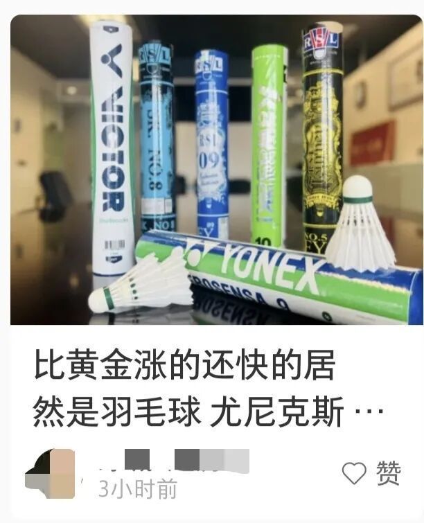 某品牌连续两年多次涨价小坊发现在社交媒体上不少网友表示有共鸣羽毛球确实涨价了
