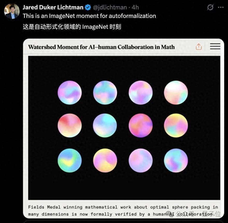 这一最新成果一经公布,立即在x上引发了讨论热潮,甚至有数学家称之为“自动形式化领域的ImageNet时刻”。